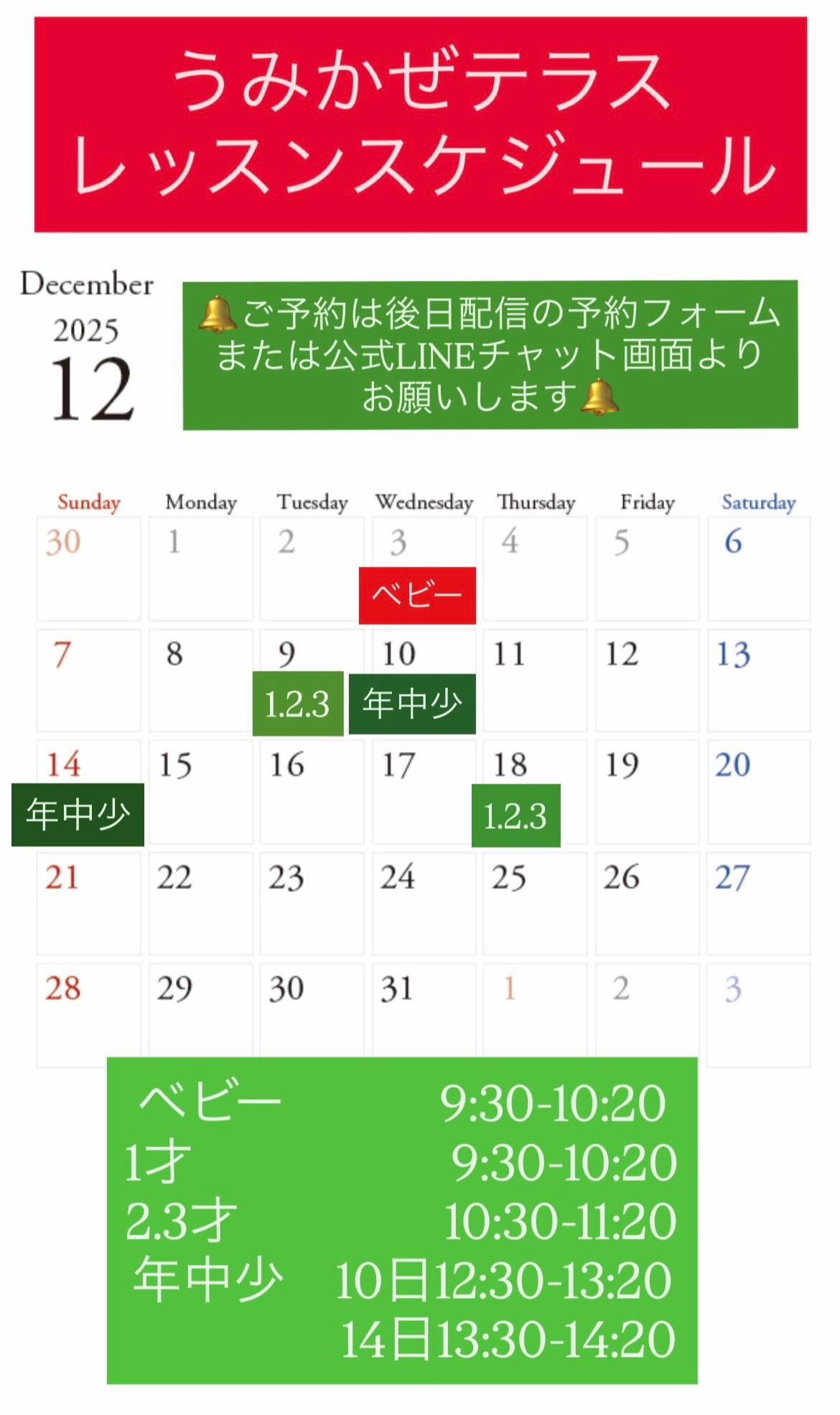 12月レッスンスケジュール